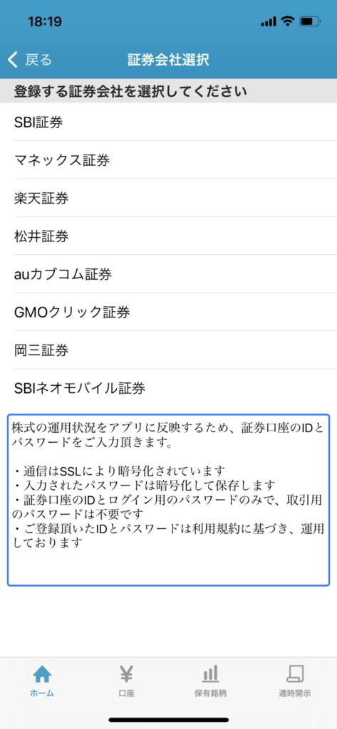 - 複数の証券会社の口座、保有銘柄を一括管理できる